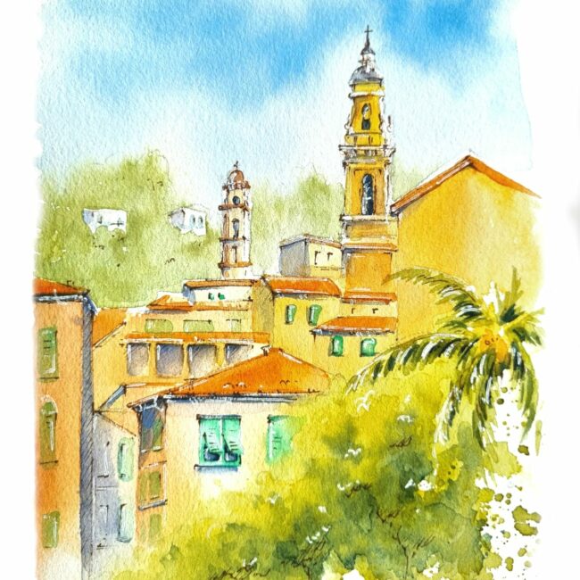 Moi c’est Emmanuelle, j’ai 36 ans et je suis une vraie passionnée d’aquarelle et de voyage J’aime peindre l’eau, avec ses reflets et effets de transparence. Je vis à Menton, sur la Côte d’Azur et je suis toujours enchantée de découvrir de nouveaux endroits à peindre sur le vif. Ce qui m’anime : retranscrire la beauté et l’émotion d’un paysage naturel ou d’un portrait, partager et transmettre le bonheur que procurent le dessin et l’aquarelle.
